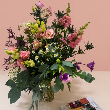 A best-seller, this hand-tied bouquet is a mixture of the best pink flowers in season.